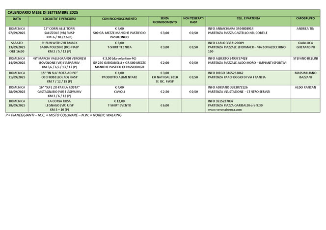 CALENDARIO SETTEMBRE 2025