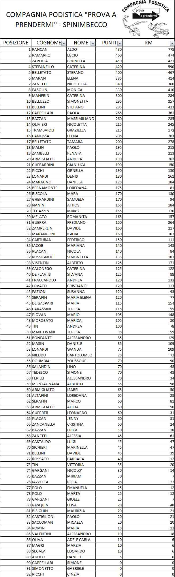 N.B. si ricorda, come da regolamento che per ottenere un premio finale, è necessario aver accumulato nel corso dell'anno almeno 50 punti in classifica.